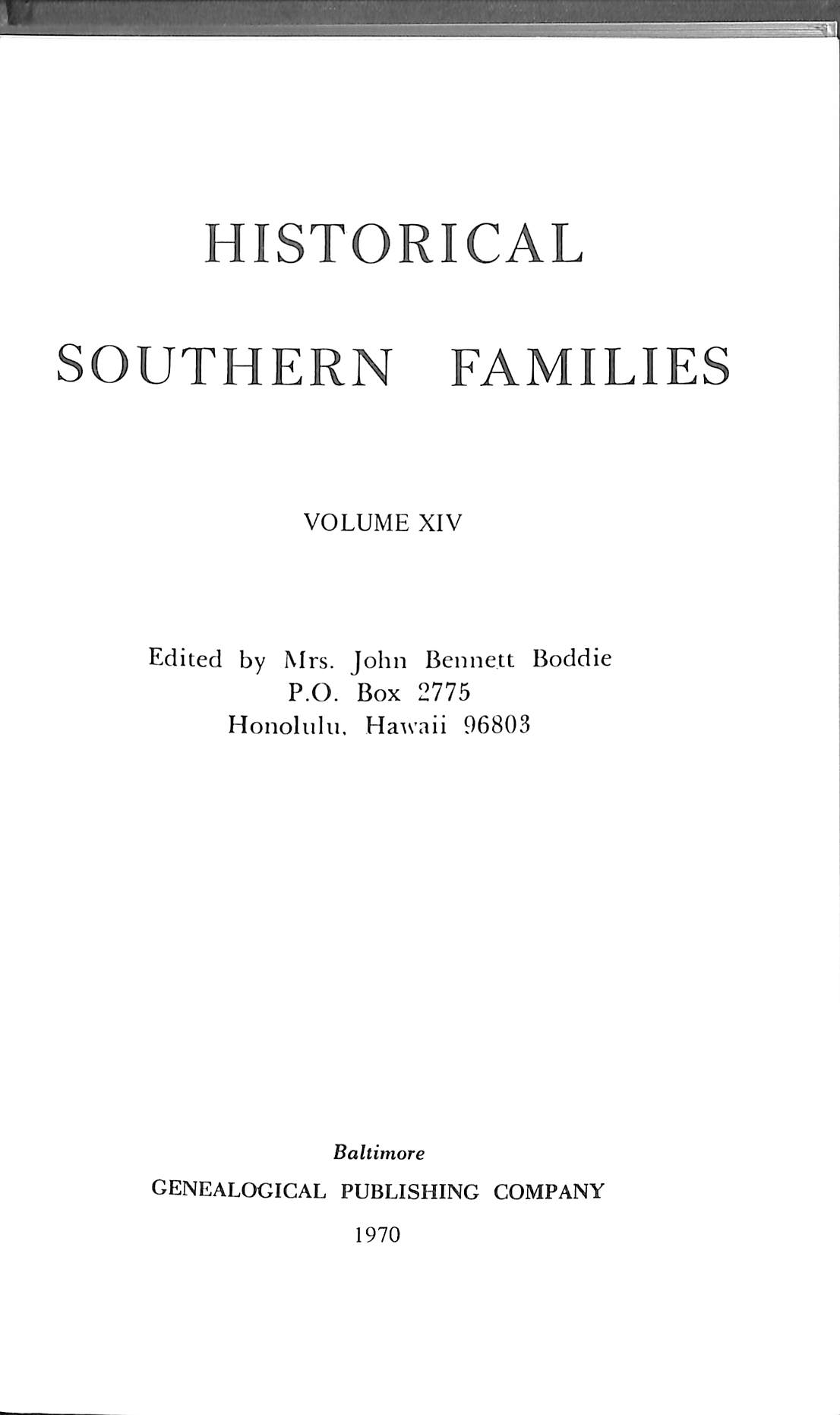 This is Volume XIV of a twenty-three-volume series of authoritative genealogies covering a broad spectrum of Southern families. This volume is offered on sale at 50% off till January 31.
