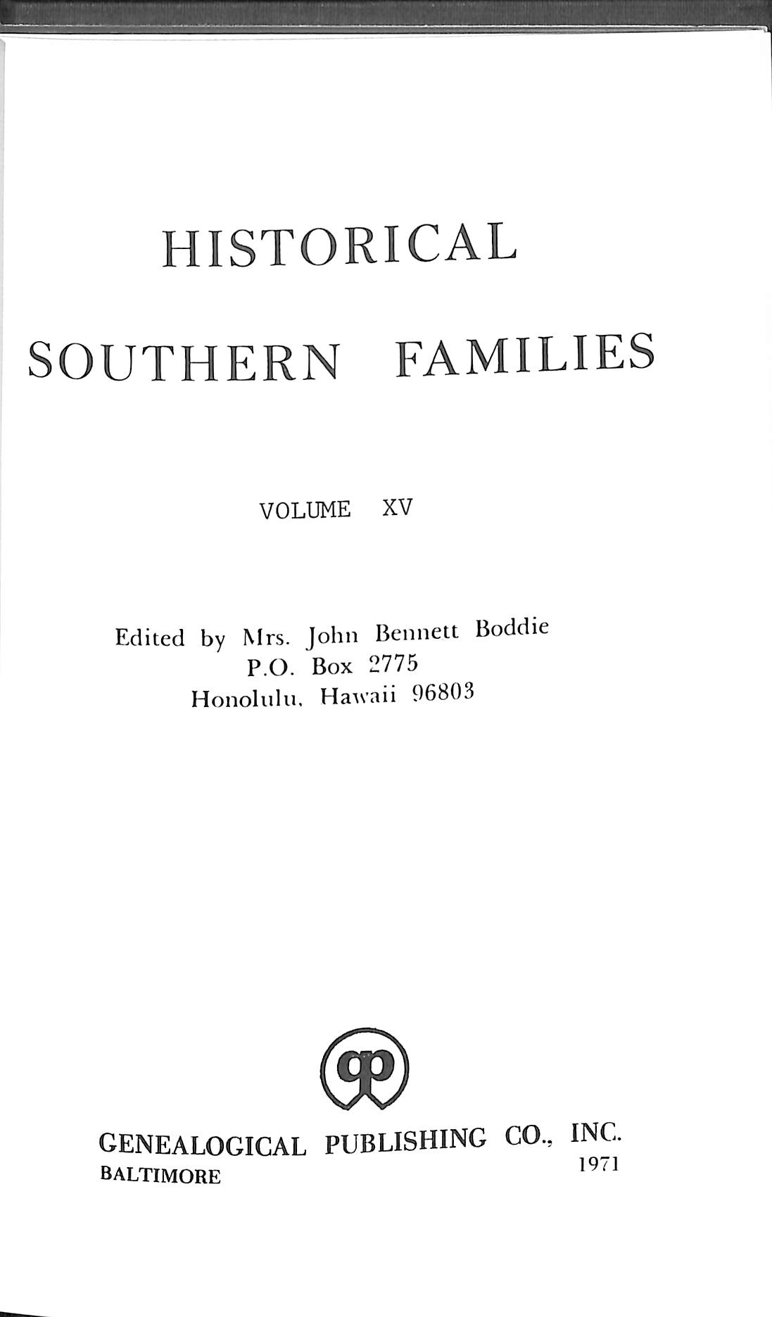 This is Volume XV in a twenty-three-volume series of authoritative genealogies covering a broad spectrum of Southern families. This volume is offered on sale at 50% off till Januar y 31.