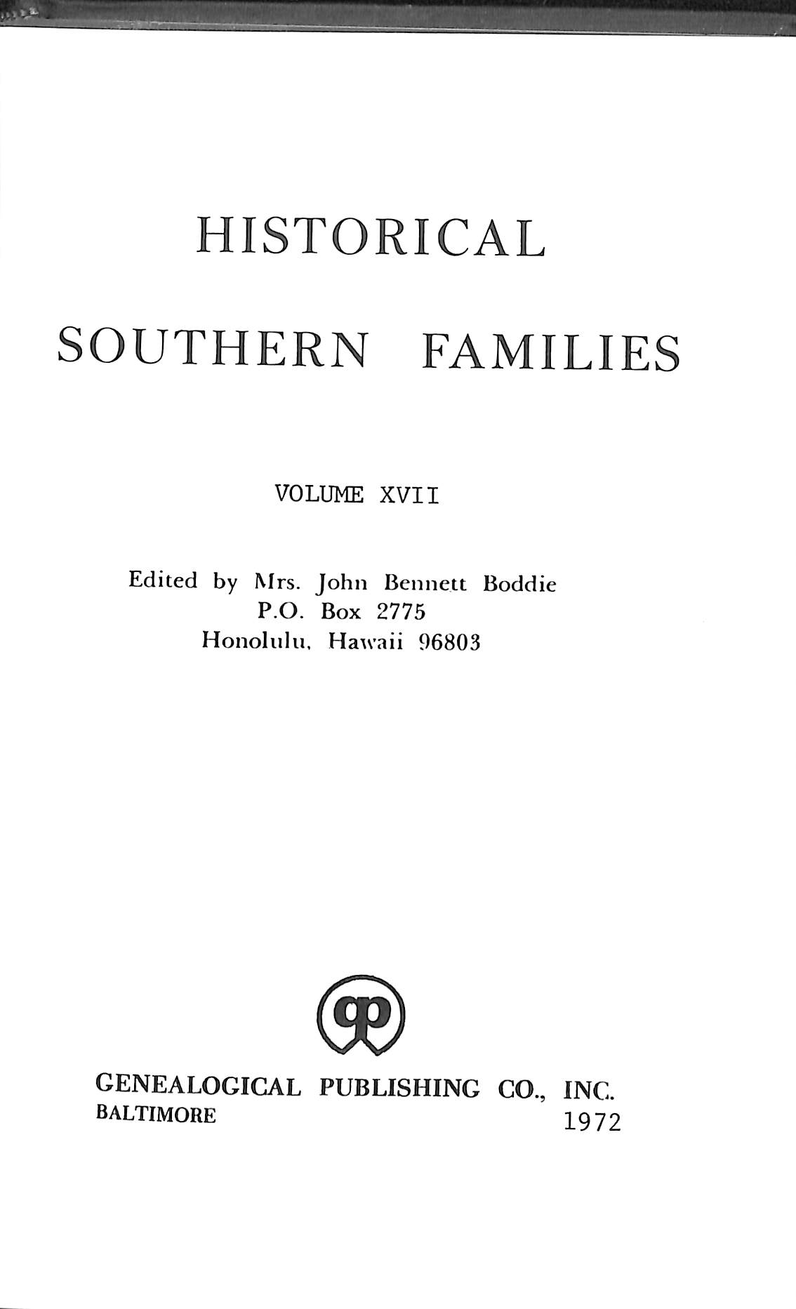 This is Volume XVII in a twenty-three-volume series of authoritative genealogies covering a broad spectrum of Southern families. This volume is offered on sale at 50% off till January 31.