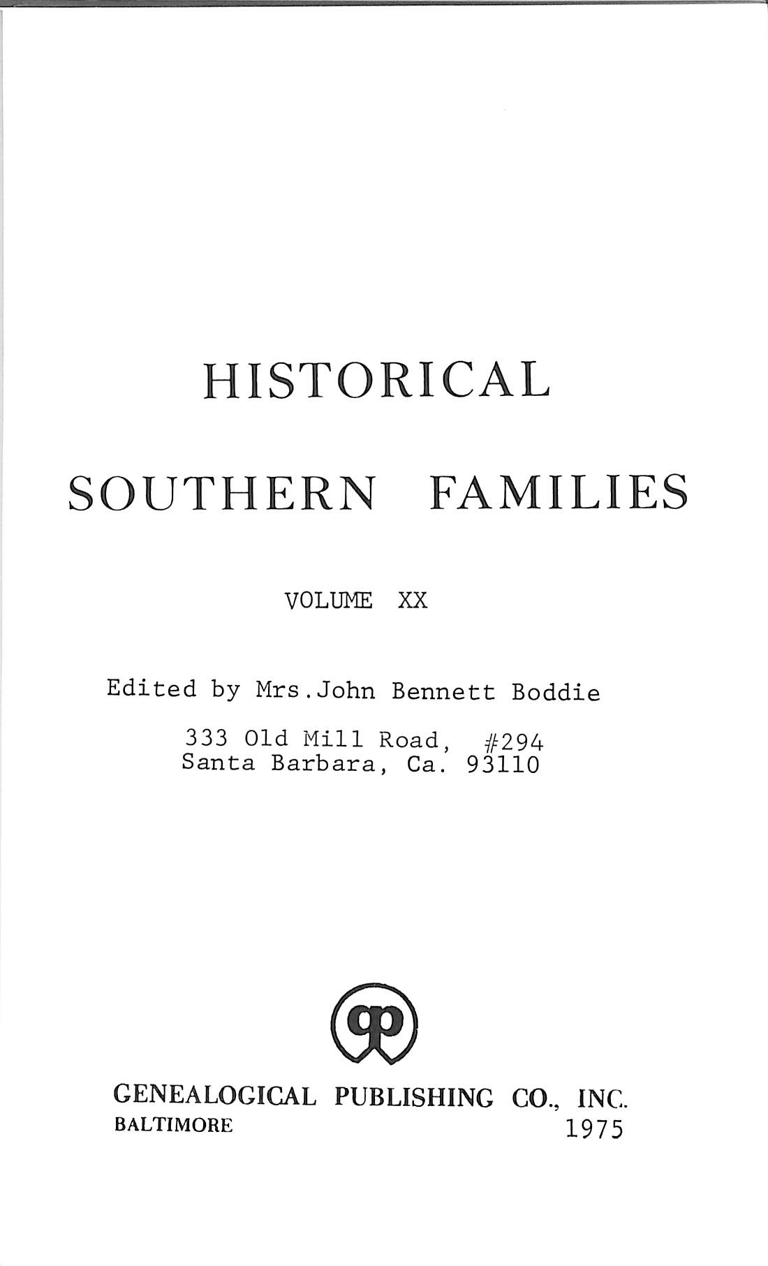 Southern Historical Families, Vol. XX