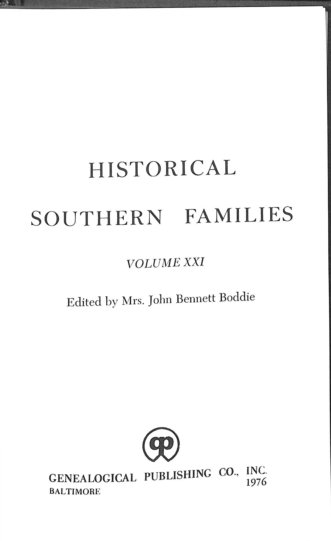 This is Volume XXl in a twenty-three-volume series of authoritative genealogies covering a broad spectrum of Southern families. This volume is offered on sale at 50% off till January 31.