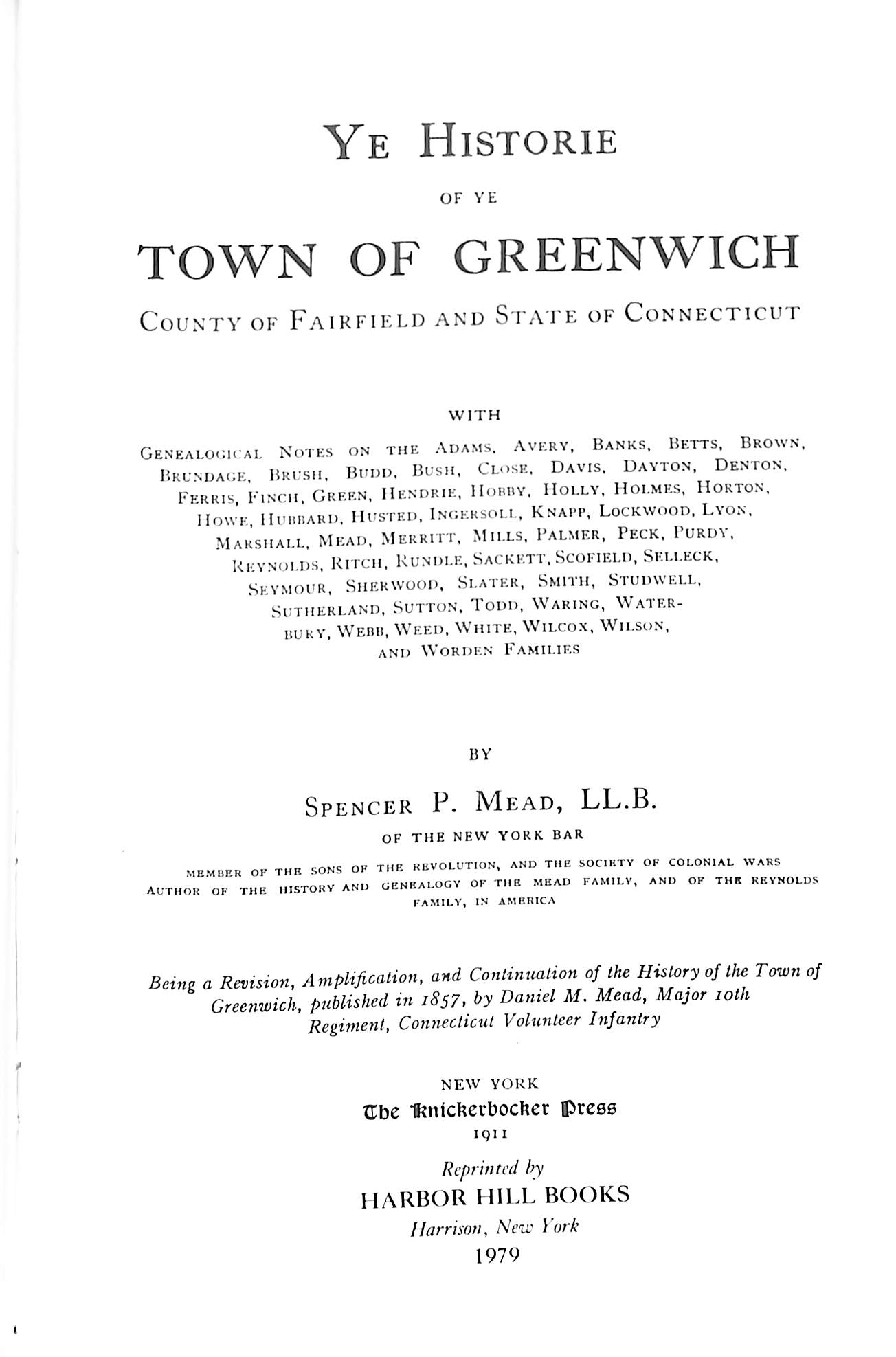 Ye Historie of Ye Town of Greenwich by Specer P Meade