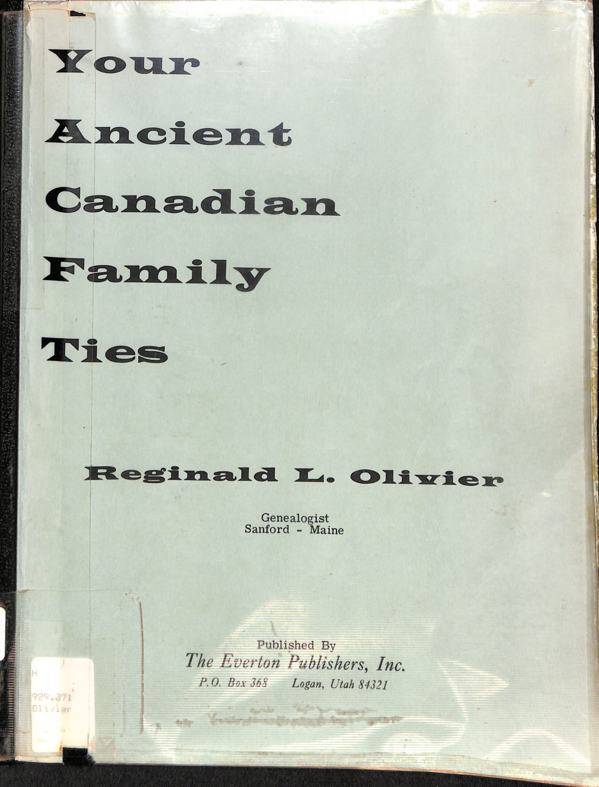 / Your Ancient Canadian Family Ties by Reginald L Oliver